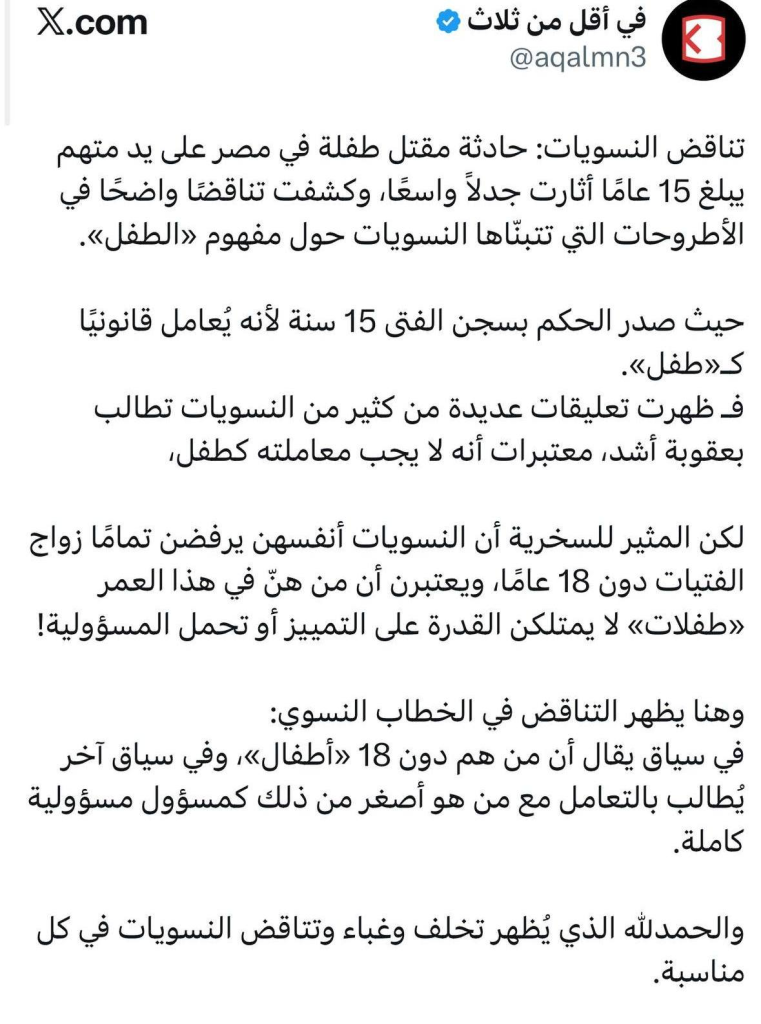 الأمر ليس انتقائية وأهواء وطمع، بل لو كان في سن ١٨ فإن المنظمات الحقوقية العالمية بلا نزاع بينها ترفض عقوبة الإعدام من الأساس، وغالباً سيدخل السجن فحسب لمدة يحددها القضاء.